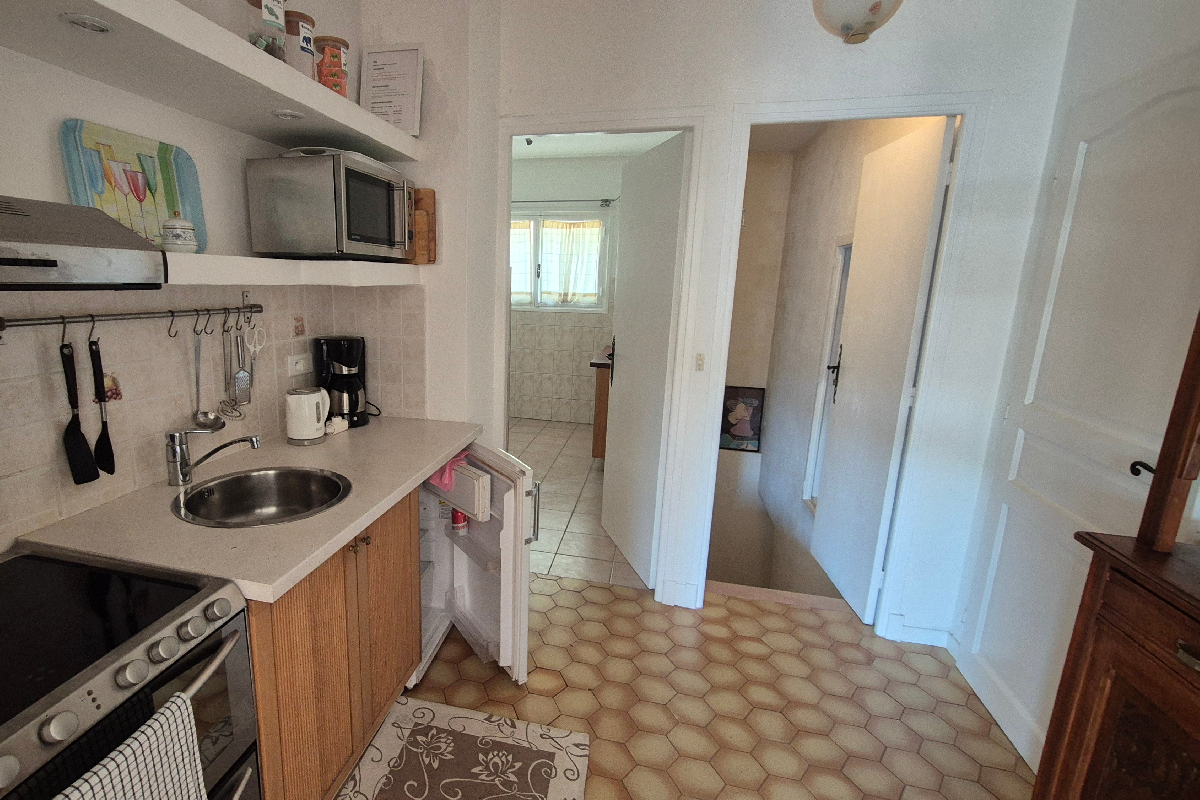 With a total of 323 square meters of living space, the property includes the main residence and three holiday apartments. Built on a hillside, the villa offers ground-level access to both the main home and the apartments—each with its own private entrance on opposite sides. The apartments can also be accessed internally from the main residence, making the layout flexible.